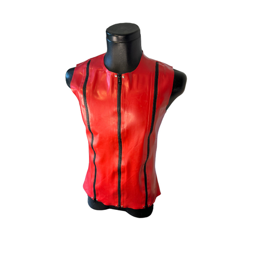 Peter Domenie - Latex Herenshirt Mouwloos - Rood met Zwarte Striping - Maat L