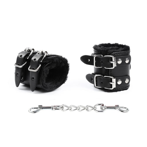 Smart Moves – Handfesseln mit doppeltem Riemen – mit Fell gefüttert – schwarz