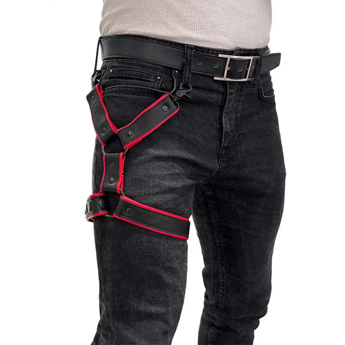 Brutus – Leder-Beingeschirr – verstellbar – schwarz/rot
