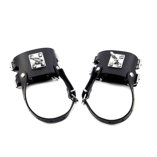 Kiotos Leather - Leather Ankle Cuffs with heavy duty o-ring and extra strap under the feet - Black