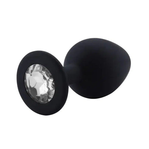 PLGZ - Rosebud Silicone Anal Plug - Black - White Decorative Stone -Available in 3 sizes