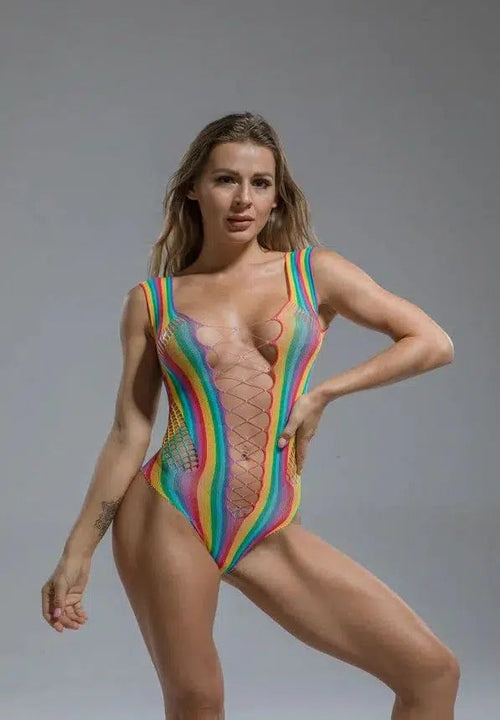 View full detailsCindylove - Fishnet Body with Crossed Shoulder Straps - One Size - Rainbow