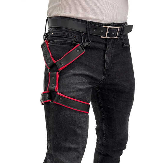 Brutus - Leather Leg Harness - Adjustable - Black/Red