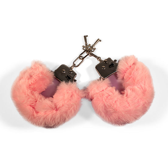 De stevige stalen boeien worden omhuld door zacht roze bont dat comfortabel rond de polsen ligt. Hierdoor blijft de focus op het spel en niet op ongemak. De kliksluiting geeft direct het gevoel van controle, terwijl het pluche de sfeer luchtig houdt.
