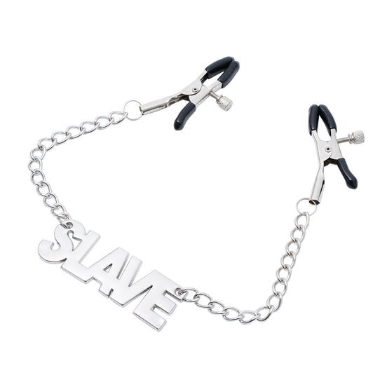 La presión ajustable hace que estas pinzas para pezones sean adecuadas tanto para principiantes como para amantes experimentados. Desde un sutil pellizco que produce un suave cosquilleo hasta un agarre firme que ejerce una presión palpable sobre los pezones, tú decides la intensidad. La palabra «SLAVE» cuelga desafiante como acento visual, un recordatorio lúdico de la distribución de roles y la dinámica que creáis juntos. Es un accesorio que excita y comunica sin decir una palabra.