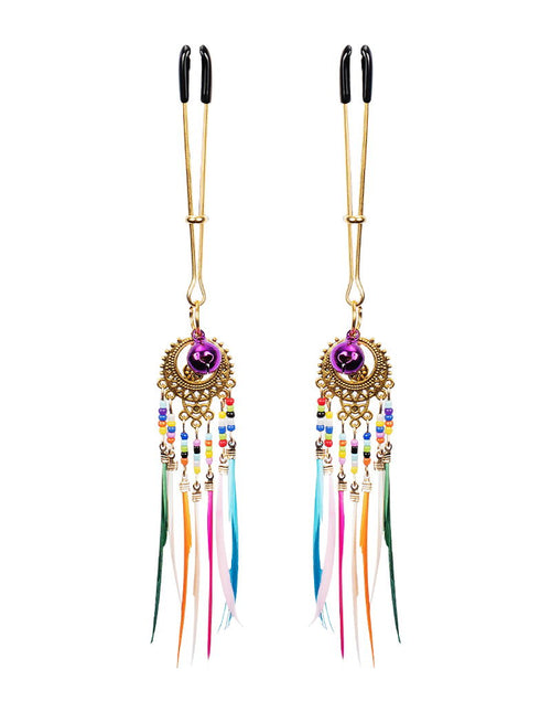 Rimba - Pinces à tétons avec perles et plumes - Multicolore