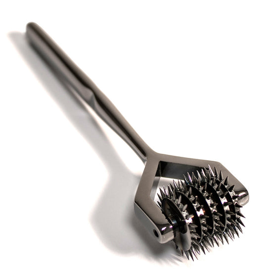 Ce pinwheel, également appelé « Wheel on Pain », est équipé de cinq roulettes placées avec précision qui glissent sur la peau. En fonction de la pression et de la vitesse, la sensation varie d’un léger picotement à une expérience plus vive et intense. C’est un jeu de contrastes : commencer en douceur, faire monter la tension et doser précisément où et quand vous augmentez l’intensité.