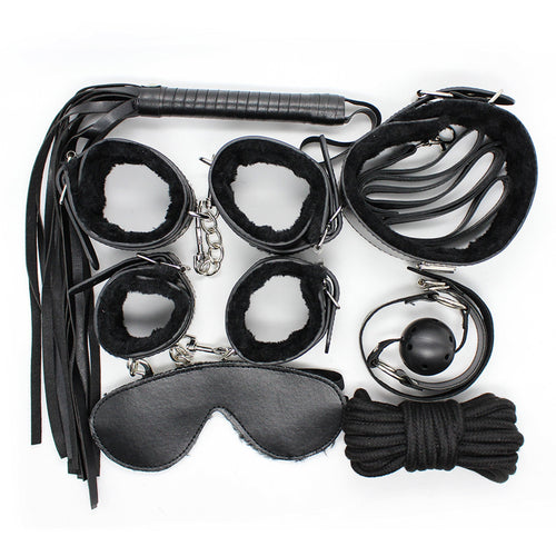 Fixxx - Set Bondage BDSM - Foderato di pelliccia - Nero