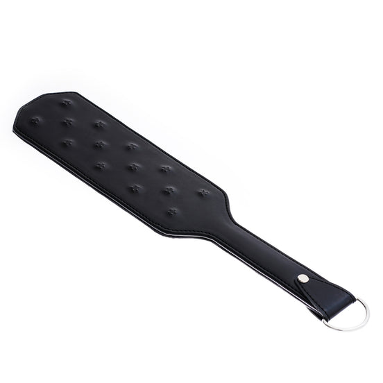 Il paddle con chiodini Smart Moves non è un accessorio per i deboli di cuore. Con una lunghezza di 39 cm e un corpo robusto in pelle PU nera, questo paddle combina i classici colpi con un tocco in più: piccole punte metalliche che provocano una sottile sensazione di formicolio ad ogni tocco. Perfetto per i dominanti che vogliono rendere il loro gioco un po' più piccante e per i sottomessi che amano il brivido al limite.