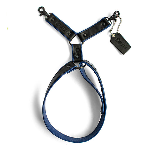 Brutus - skórzana uprząż na nogi - regulowana - czarna/niebieska