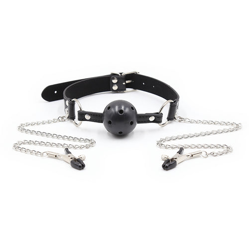 Smart Moves - Gag Kulkowy z Zaciskami na Sutki - Czarny