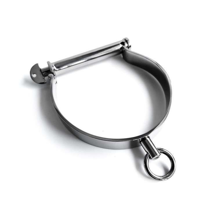 Deze Darby Style Slaven Halsband is stoer en authentiek. Deze halsband is perfect voor kinkfeestjes of intense sessies. Gemaakt van hoogwaardig, glanzend roestvrij staal, biedt deze halsband niet alleen een indrukwekkende uitstraling, maar ook een robuuste constructie voor duurzaam gebruik.