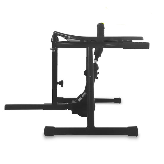 Het systeem is ontworpen met een industriële uitstraling: robuust staal, stevige verbindingen en verstelbare scharnierpunten. Geen plastic, geen franje – alleen pure functionaliteit die gericht is op stabiliteit en sensatie. Zodra alles vastzit, kun je achterover leunen, ontspannen en de machine het werk laten doen.