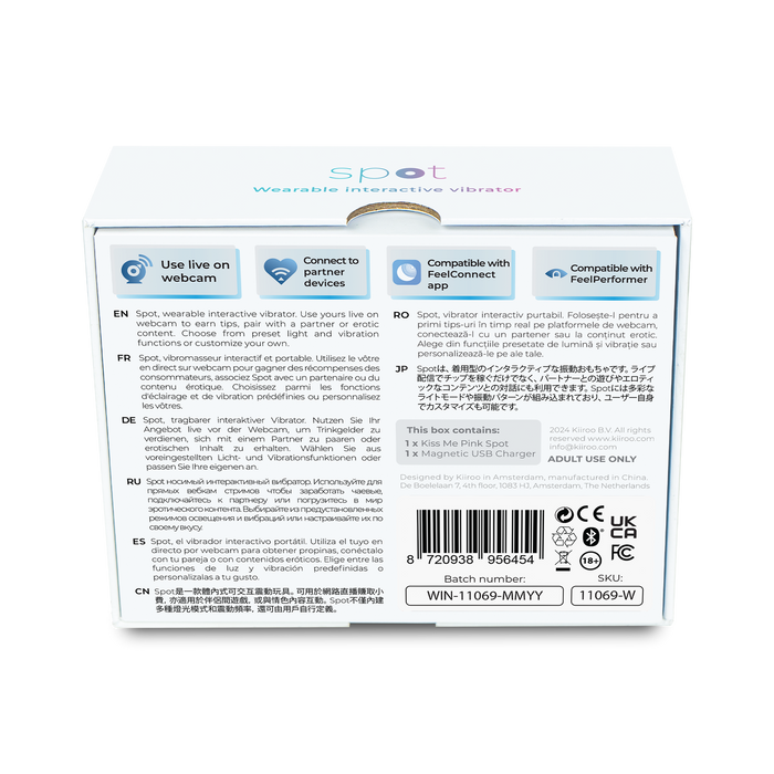 Kiiroo Spot is een gepatenteerde draagbare eivormige vibrator met een interactieve LED-lichtring die schijnt, fonkelt en knippert afhankelijk van de modus waarin je je bevindt.