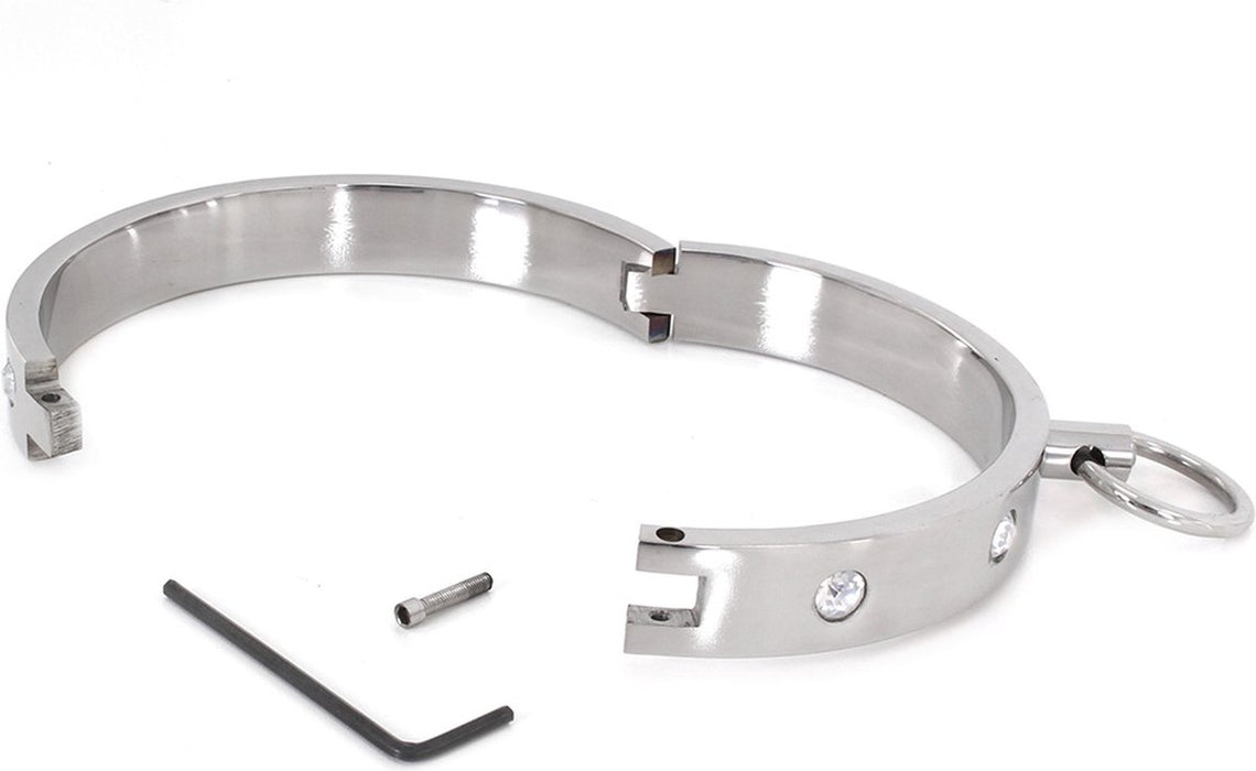 Deze sprankelende en elegante stalen collar heeft meerdere juweeltjes en laat je eruit zien als een koningin of koning. Doe hem om door de inbusschroef los te draaien met de meegeleverde inbussleutel, eenmaal om uw nek de inbusschroef vastdraaien zodra deze goed op zijn plaats zit. Aan de voorzijde zit een grote O-ring, zodat u alles wat u maar wilt kunt bevestigen. Dit item kan worden gebruikt als een kinky speelgoed of als een juweel om je sexy outfit af te maken.