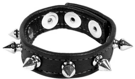 Voor een ruige, uitdagende ervaring is dezeleren balzakring met spikes een onmisbaar accessoire. Hetdoorgestikte rundleer voelt stevig aan en deverstelbare pasvorm zorgt voor een comfortabele, maar dominante grip. De metalen spikes voegen een extra sensationele prikkel toe voor wie durft.