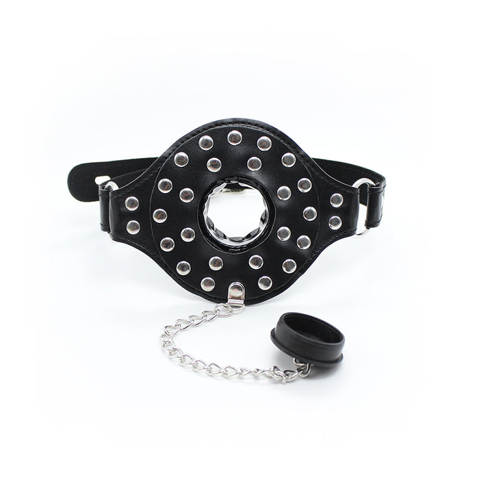 Gemaakt van hoogwaardig PU-leer, biedt deze gag een stevige, maar comfortabele pasvorm. De verstelbare riem zorgt ervoor dat hij perfect aansluit, terwijl de glanzende studs een stoere en luxe uitstraling geven. De wastafelstop fungeert als een stevig bit en voegt een speelse twist toe aan de klassieke gag.